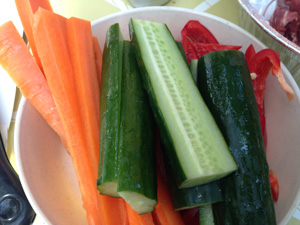 今回用意したのは、人参、キュウリ、パプリカの3種類。@RyuNagayamaさん曰く、他には大根、チコリ、アスパラ、ブロッコリーなんかもいいみたいです。